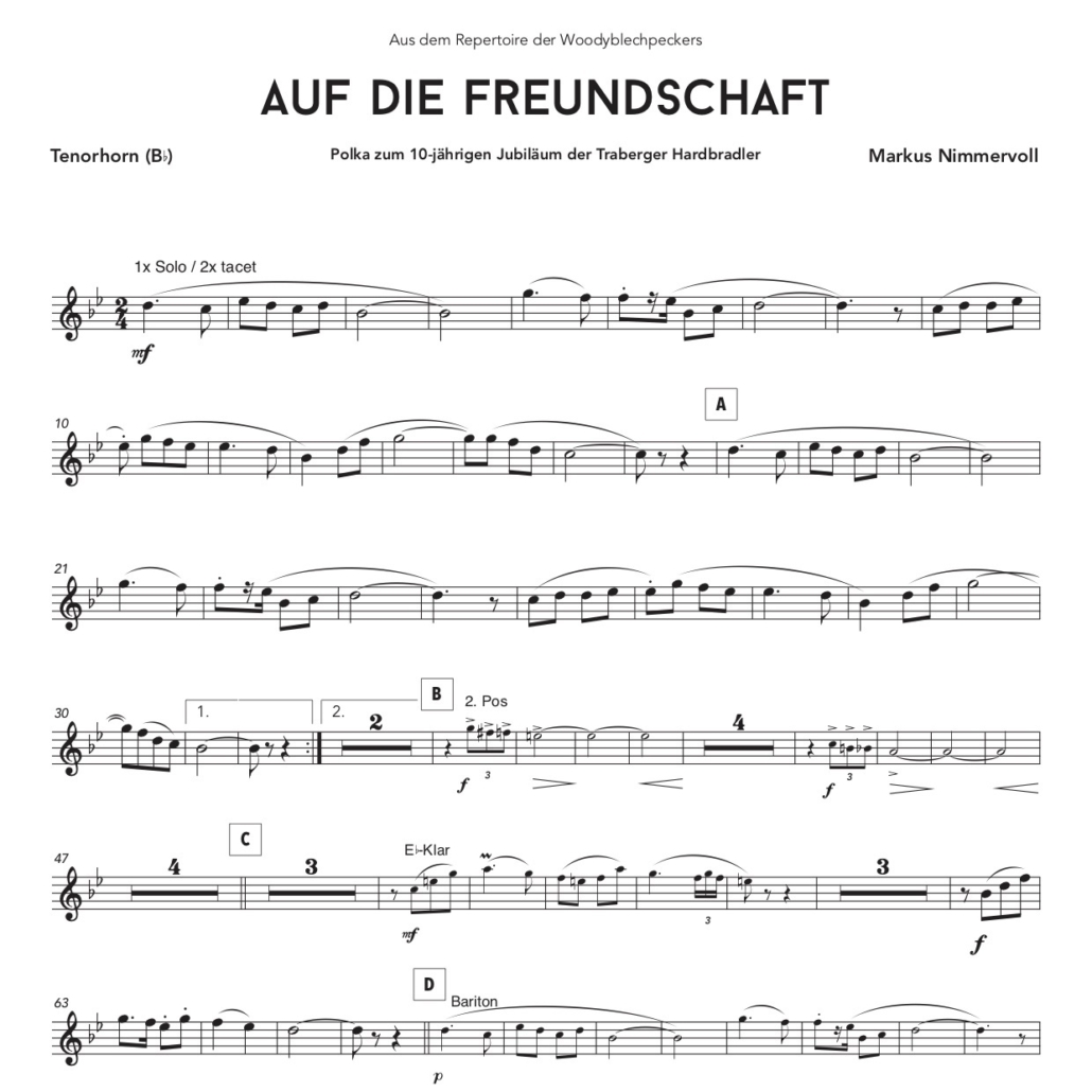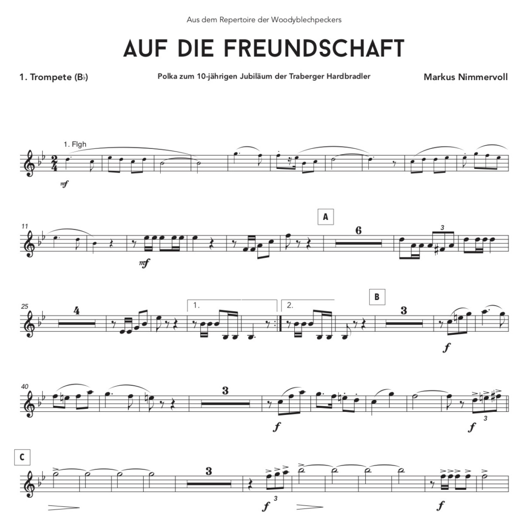 | Besetzung | Blasorchester, Böhmische Besetzung = Woody Blech Peckers Edition |
