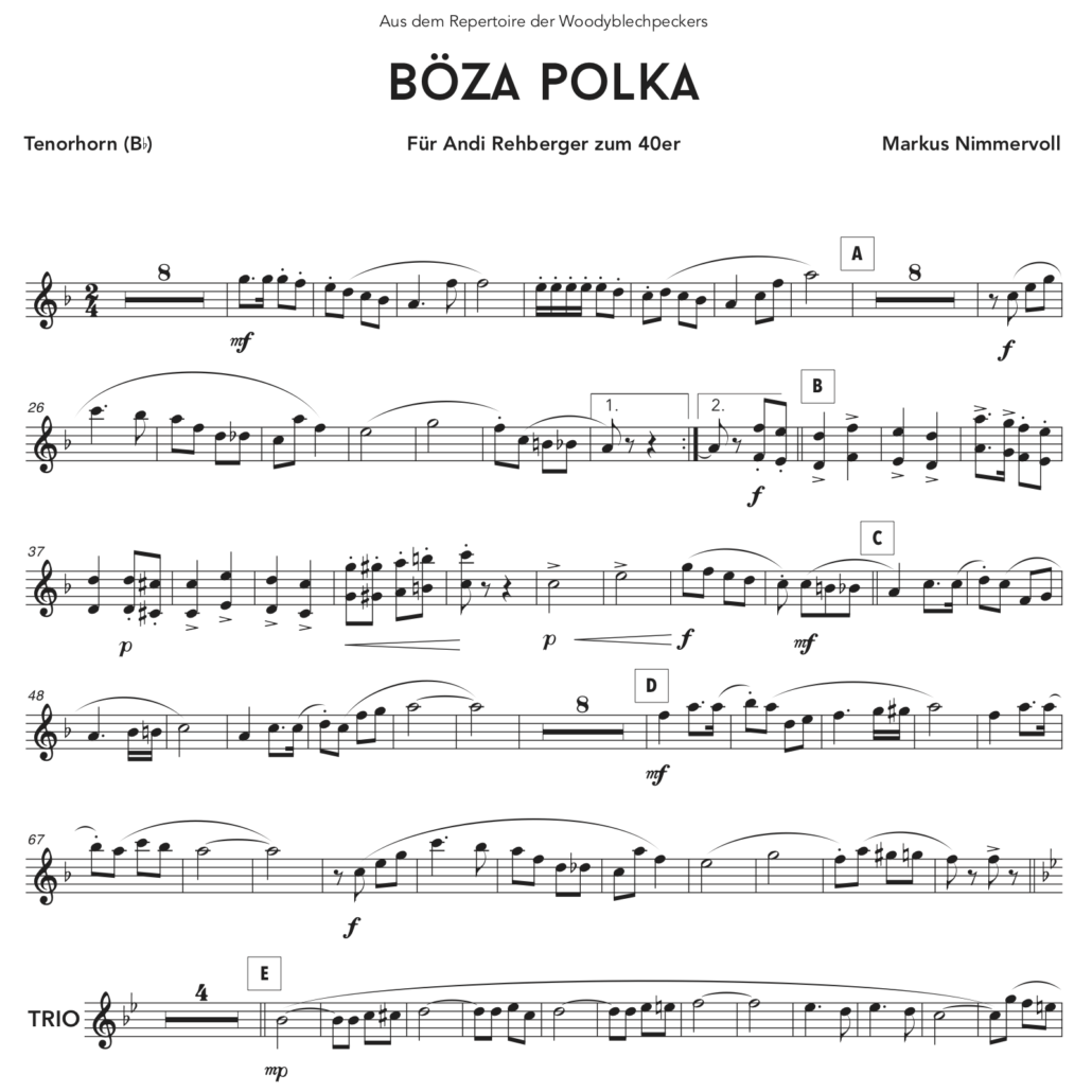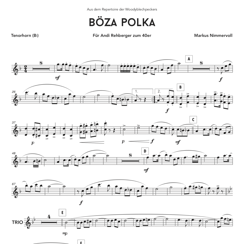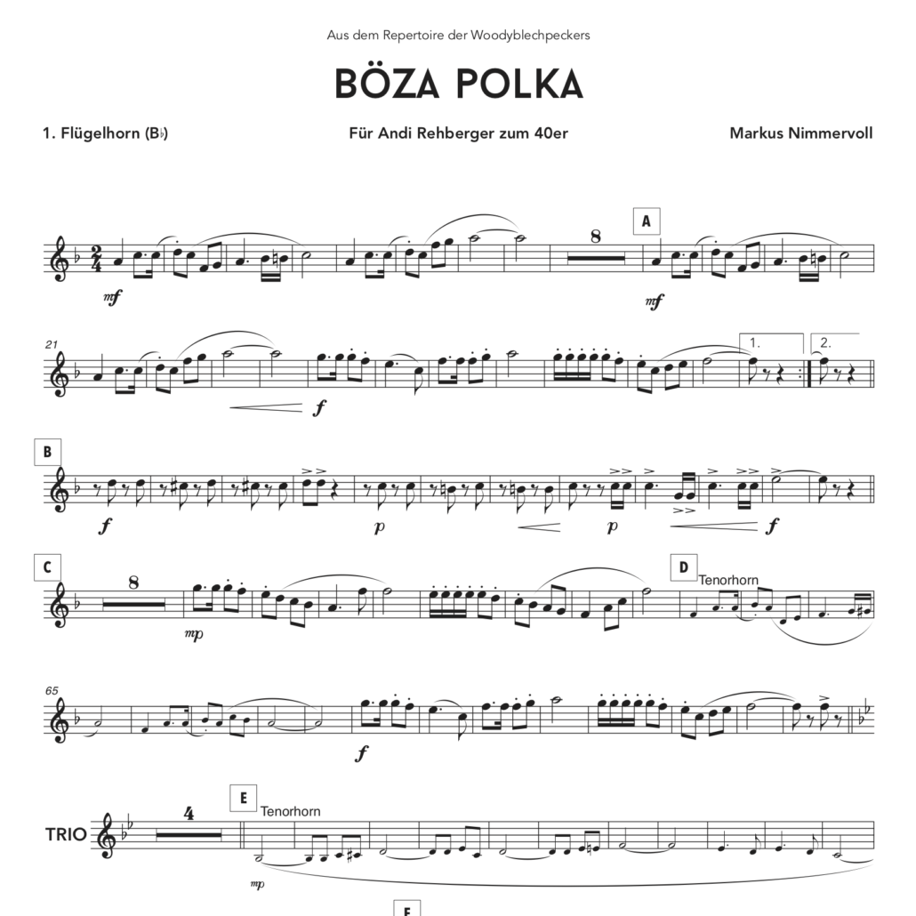 Die Böza Polka wurde für Andreas Rehberger (Hausname Böza), einem ehemaligen Mitglied der Traberger Hardbradler zum 40. Geburtstag geschrieben. Dieses Stück ist die erste Komposition aus der Feder von Markus Nimmervoll aus dem Jahr 2007, nun hat es auch den Weg in den Notenshop gefunden.